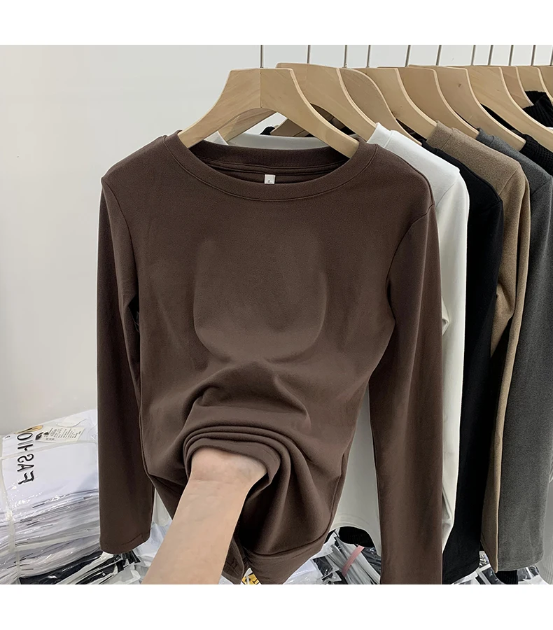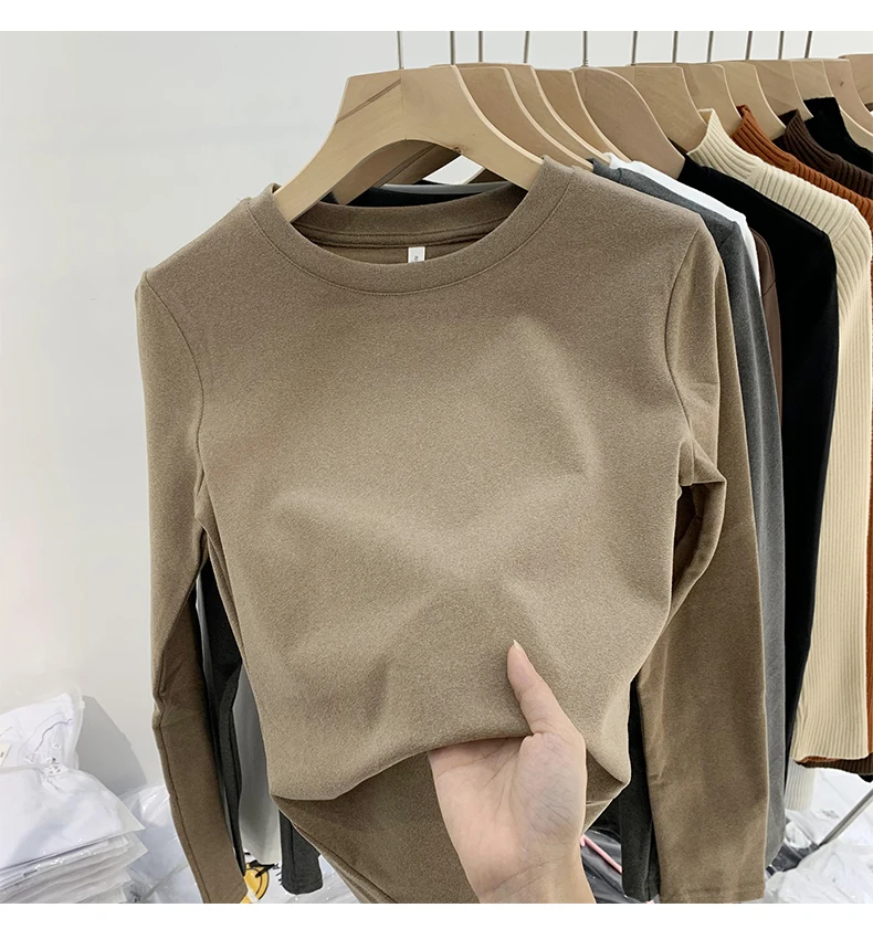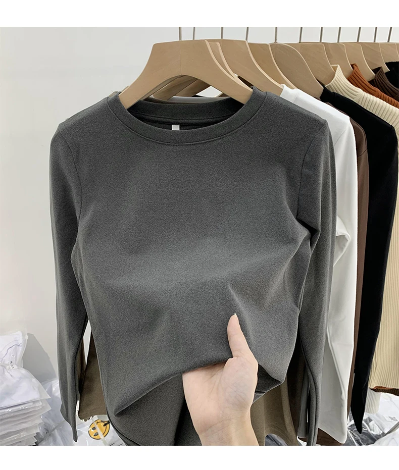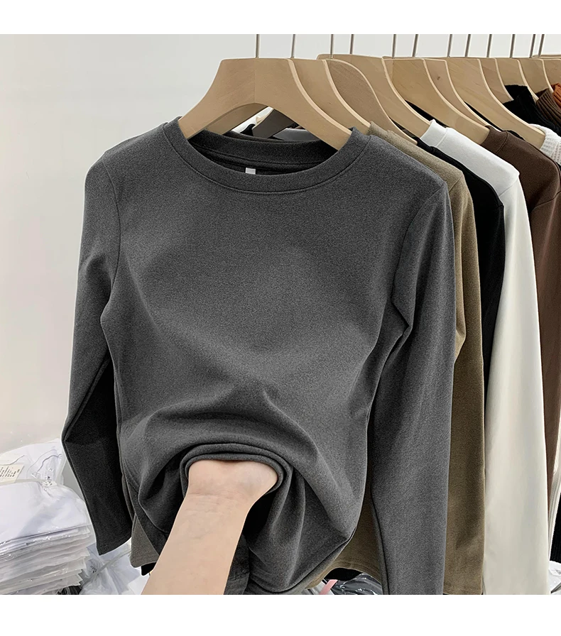 Este top de manga comprida apresenta um estilo coreano, combinando com facilidade a moda e a funcionalidade.